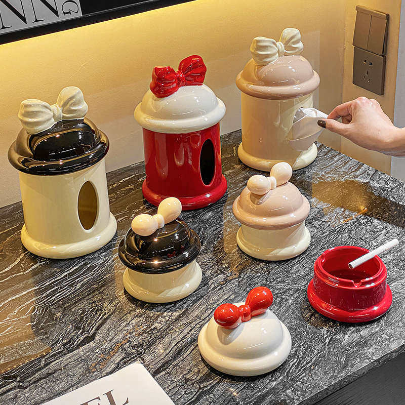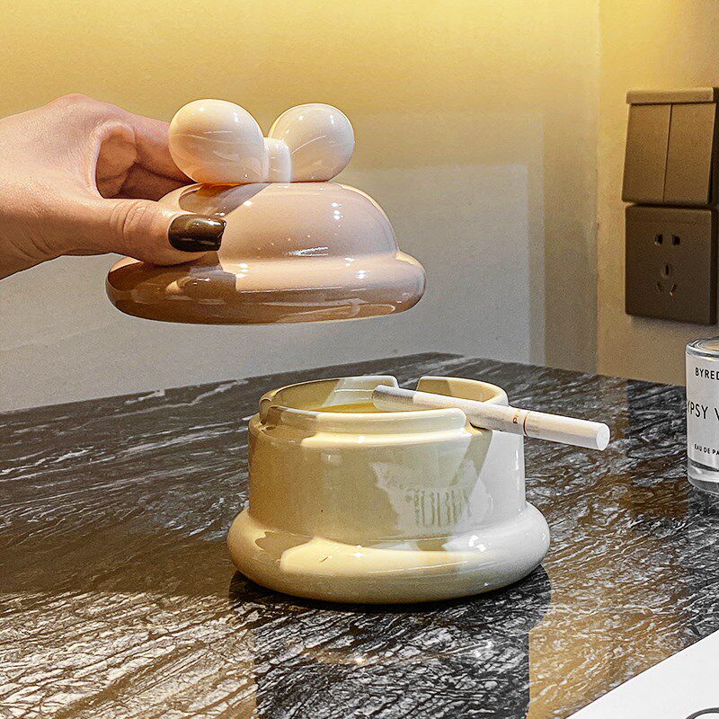装饰可爱烟灰缸创意家用茶几烟盅高颜值客厅女陶瓷灰缸带盖防飞灰