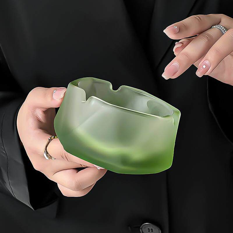磨砂绿色烟灰缸高级感小众轻奢创意办公室家用客厅摆件可爱烟灰缸