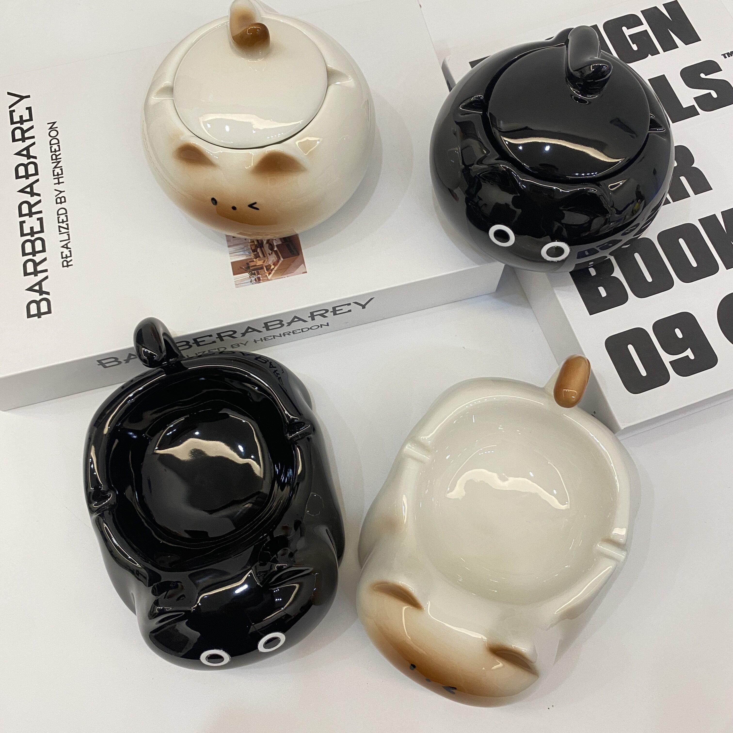 Q3Y可爱烟灰缸陶瓷创意家用客厅带盖防飞灰高级感小众高端大气上