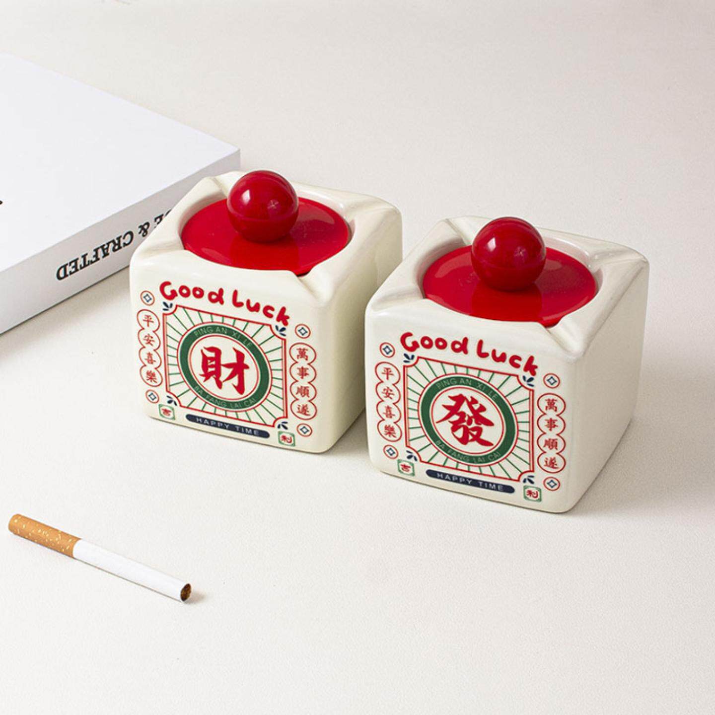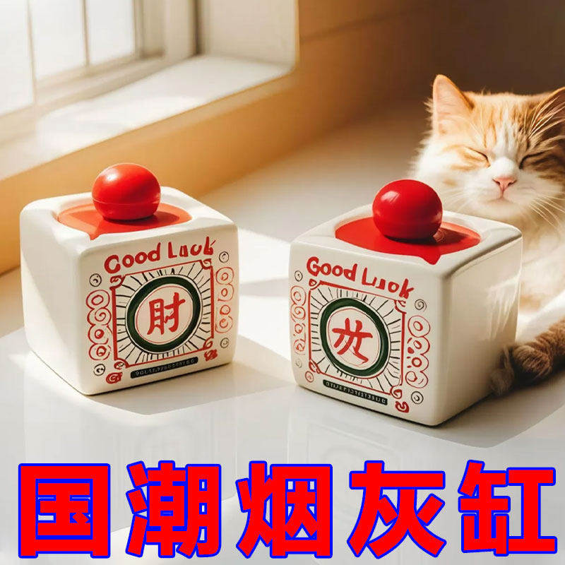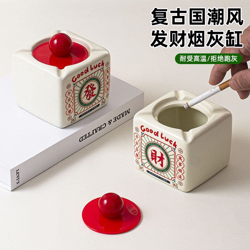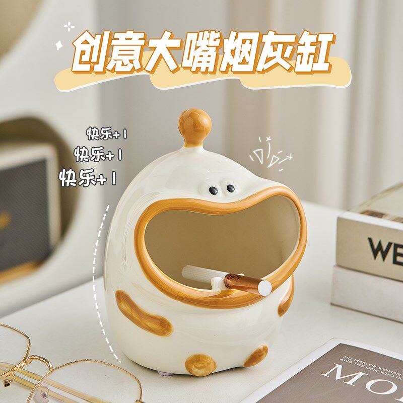 高颜值可爱烟灰缸家用发财烟缸个性客厅陶瓷创意摆件带盖放飞烟灰
