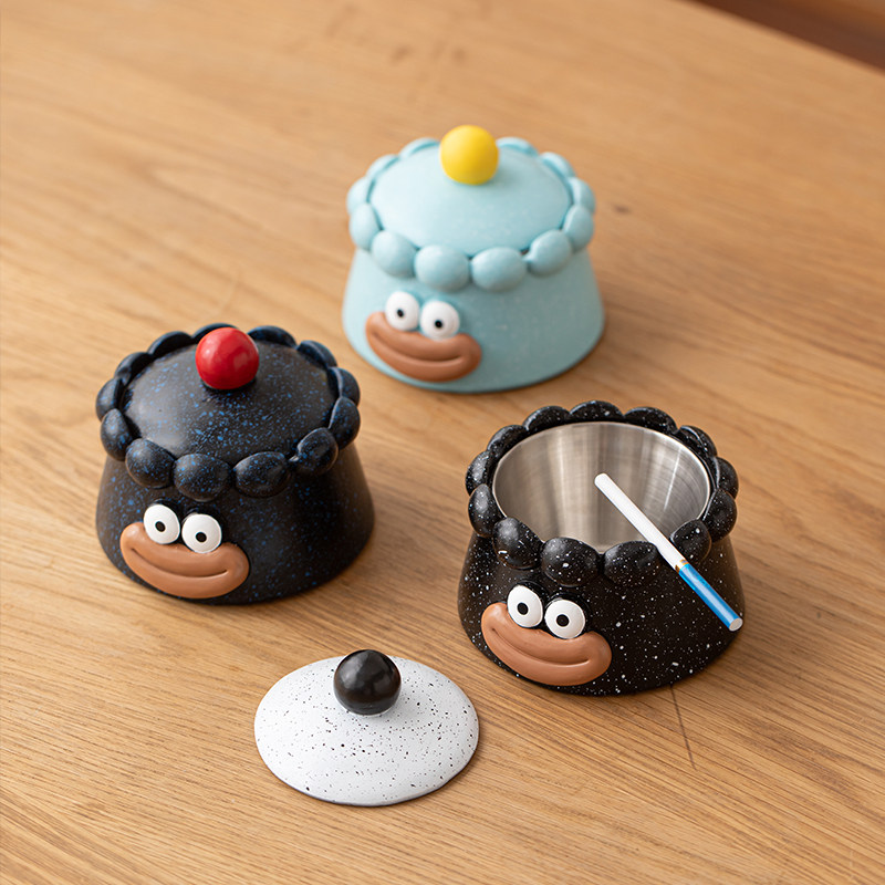 高颜值可爱烟灰缸家用烟缸装饰个性客厅树脂创意摆件带盖简约防飞