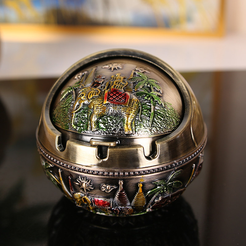 北欧复古创意合金球形带盖卧室可爱烟灰缸怀旧个性办公室防风烟盅