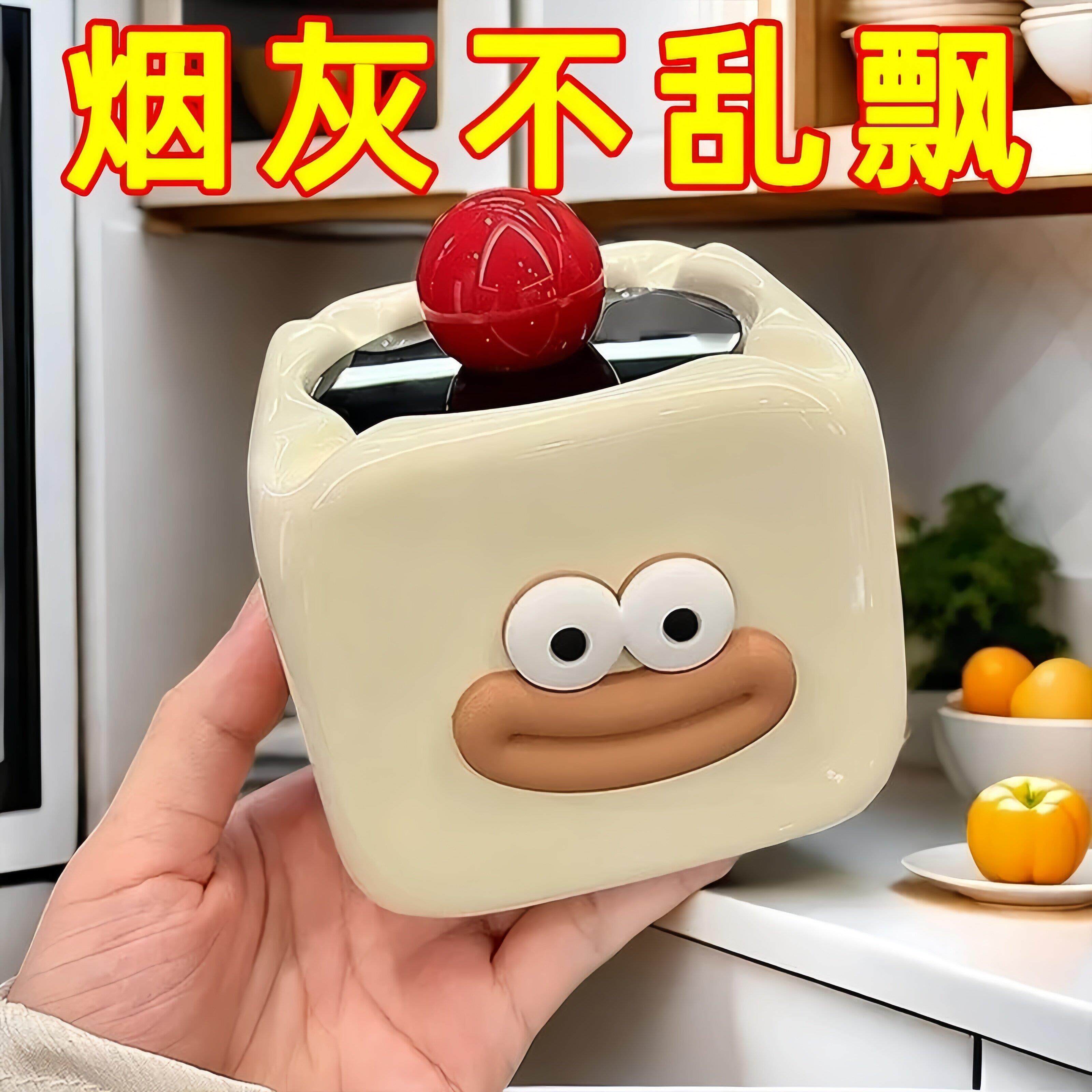 高颜值可爱烟灰缸家用烟缸装饰个性客厅陶瓷创意摆件带盖高级防飞
