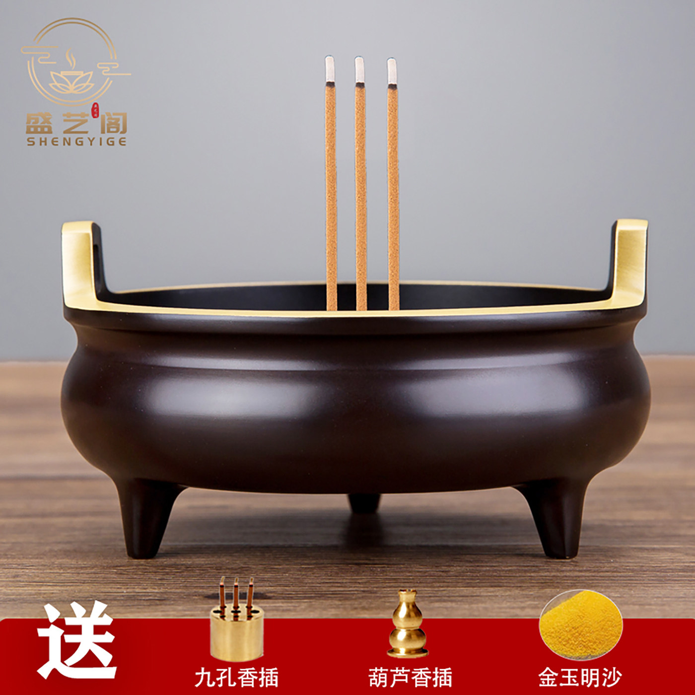 纯铜香炉家用供奉宣德炉室内香插香座沉香熏香炉上香家用佛前供炉