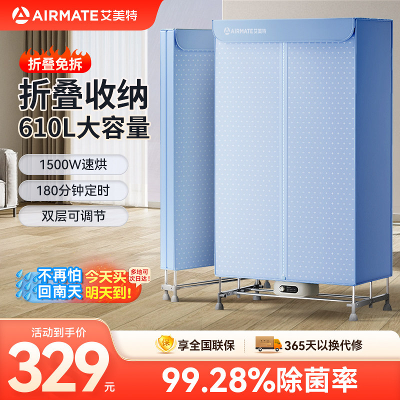 艾美特家用干衣机双层暖风定时烘干衣柜婴儿衣物衣服风干机烘衣机