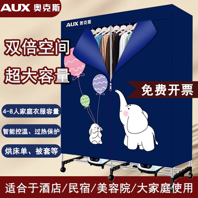 奥克斯烘干机大容量双层干衣机家用酒店民宿烘衣服速干衣柜可折叠