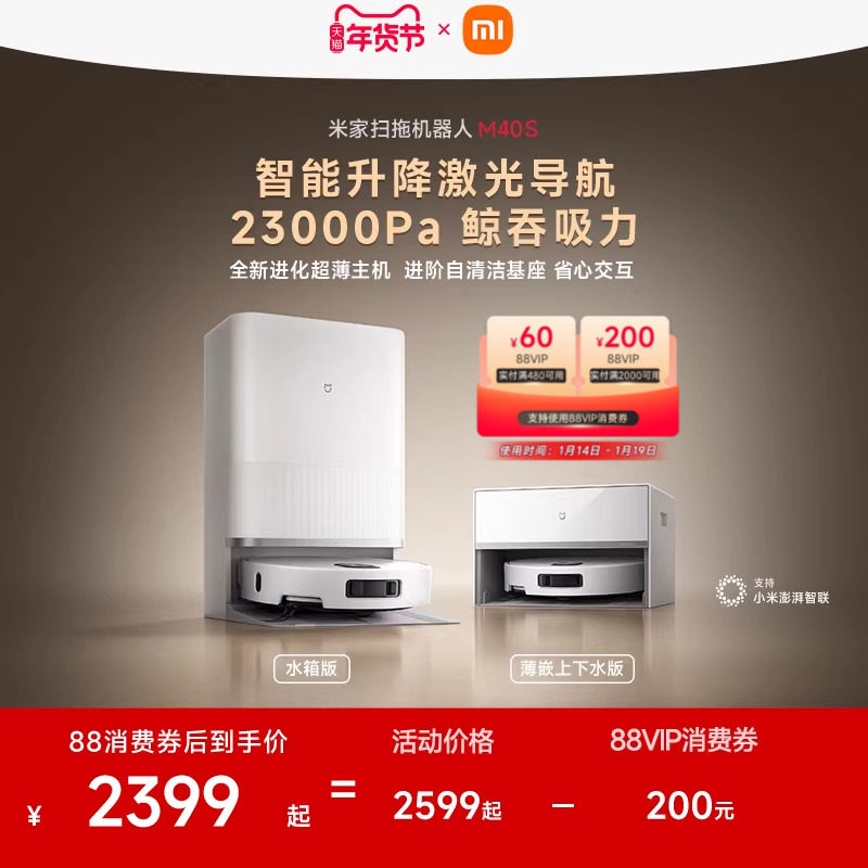 MIJIA/小米米家智能扫地机器人M40S扫拖吸一体超薄大吸力扫地机