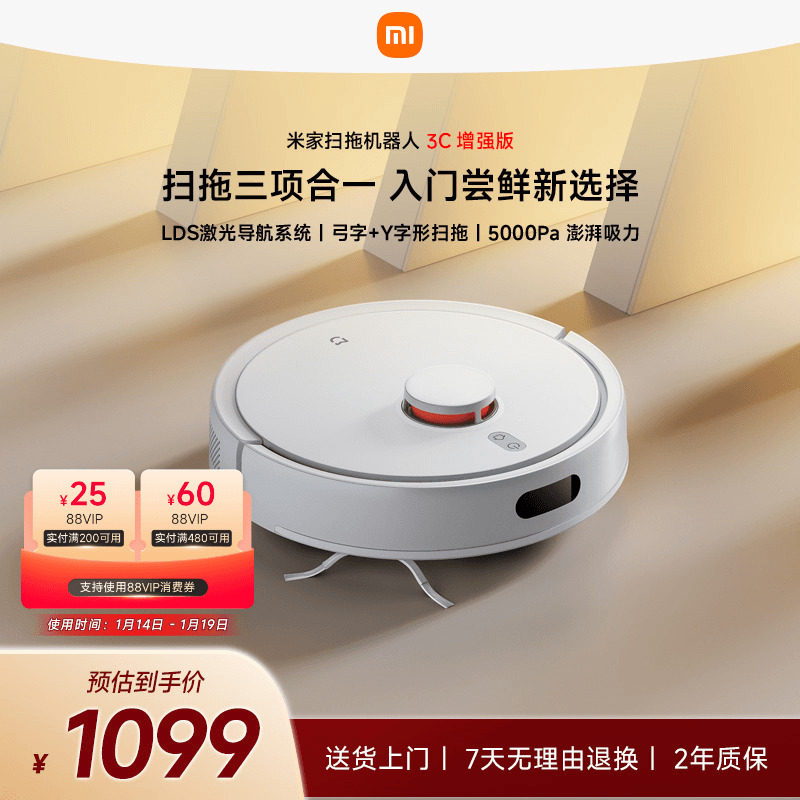 【千元旗舰爆款】小米米家扫地机扫拖一体机器人家用智能3C增强版