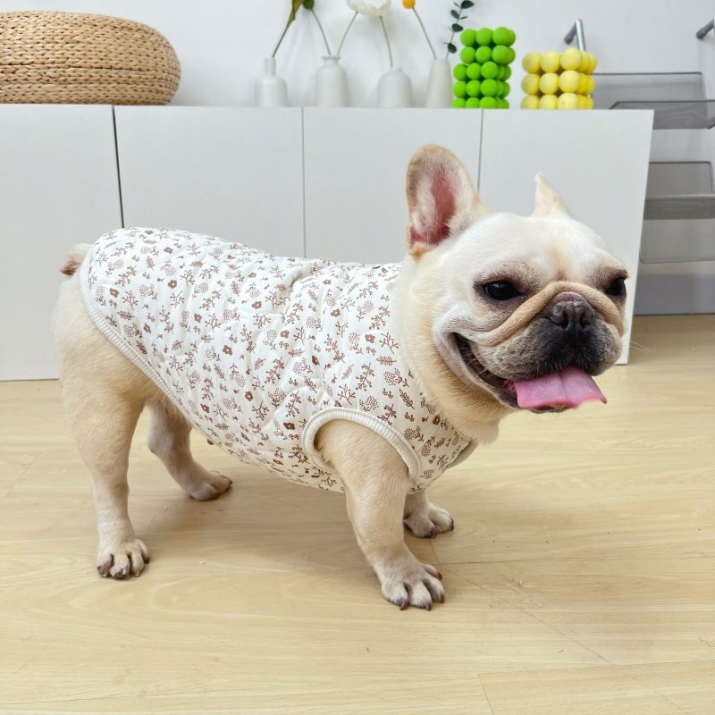 狗狗衣服秋冬加厚保暖马甲夹棉碎花棉背心法斗巴哥斗牛犬宠物衣服