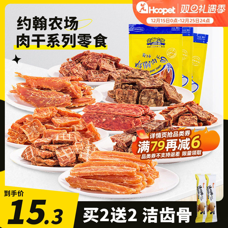 约翰农场鸡胸肉鸭肉干牛肉条磨牙棒斗牛边牧幼犬训狗奖励狗狗零食