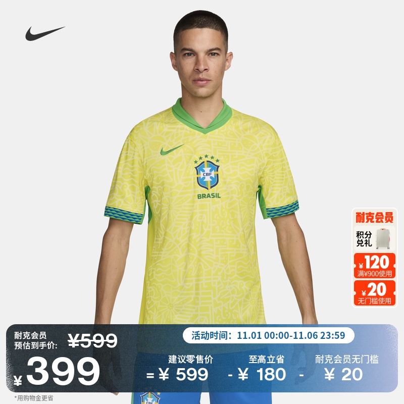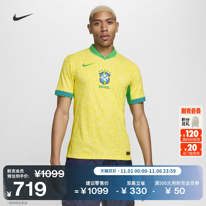 天天正品耐克2024美洲杯巴西主场球员版足球服球迷球衣FJ4284-706
