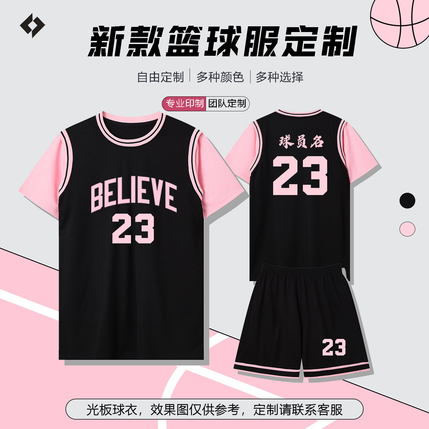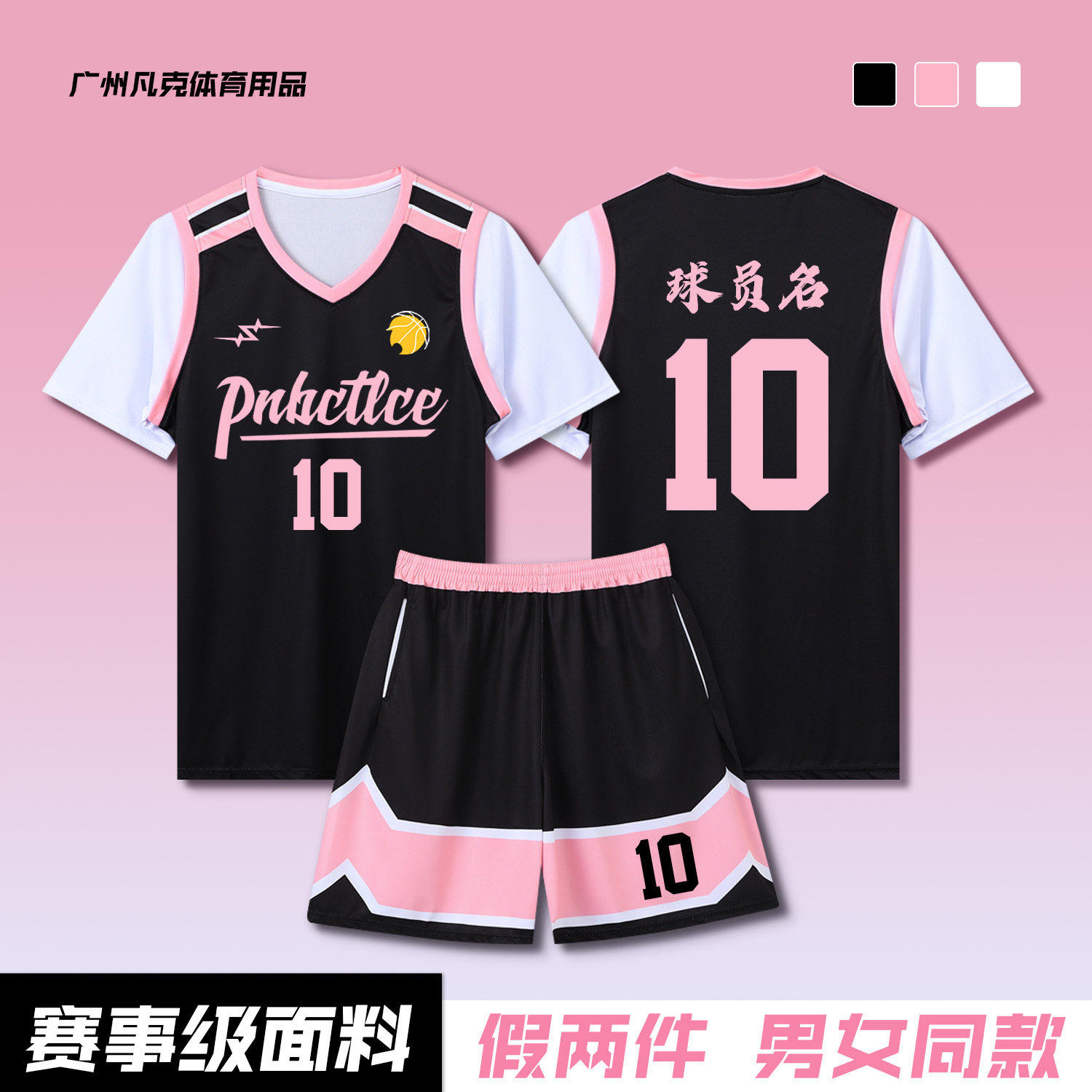 短袖篮球服套装女定制假两件篮球衣班服比赛训练学生篮球队服印字