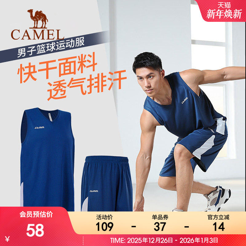 骆驼正品篮球服套装男士夏季运动背心短袖蓝球比赛训练服队服球衣