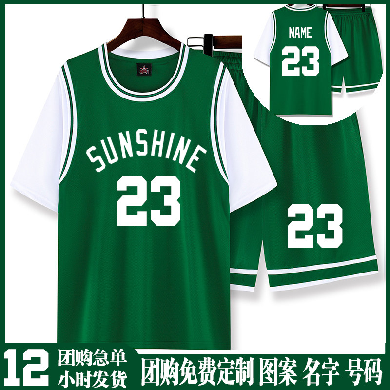 短袖篮球服套装男女假两件球衣儿童学生比赛运动队服班服定制印字