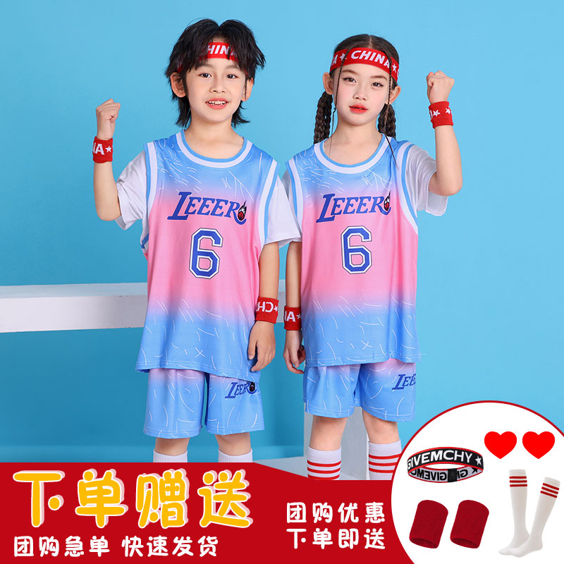 渐变儿童篮球服套装男童女童新款速干球衣女孩短袖训练服班级队服