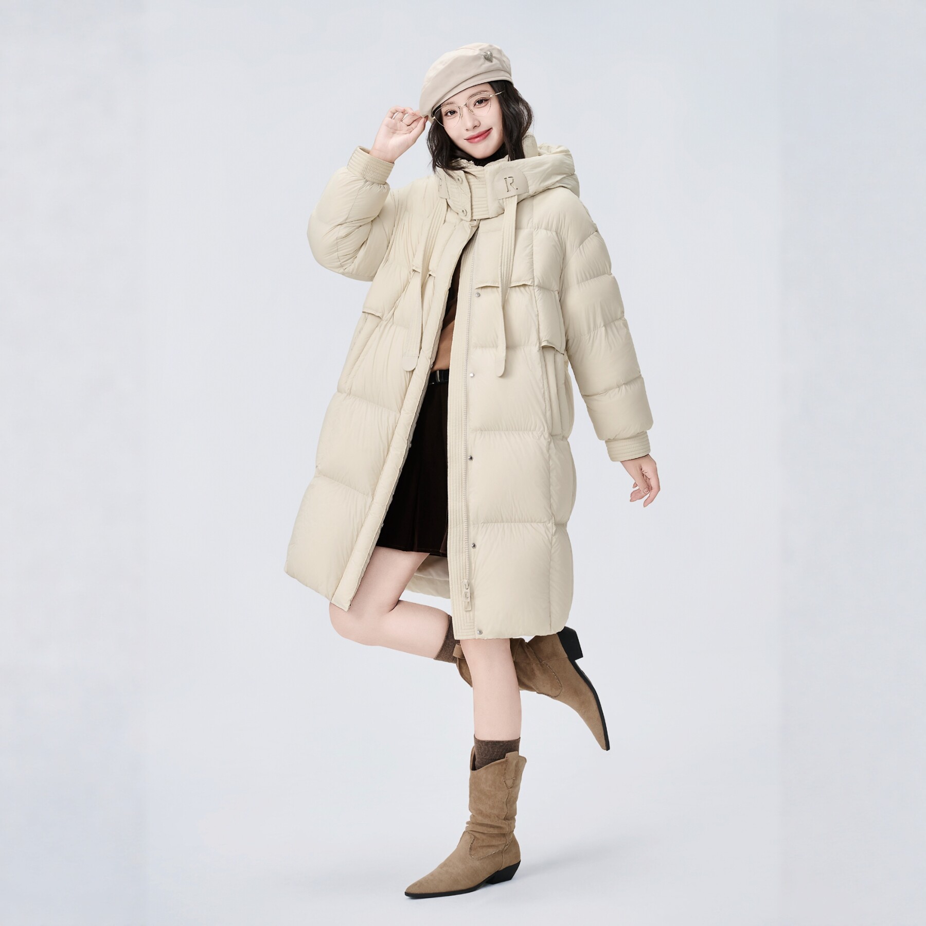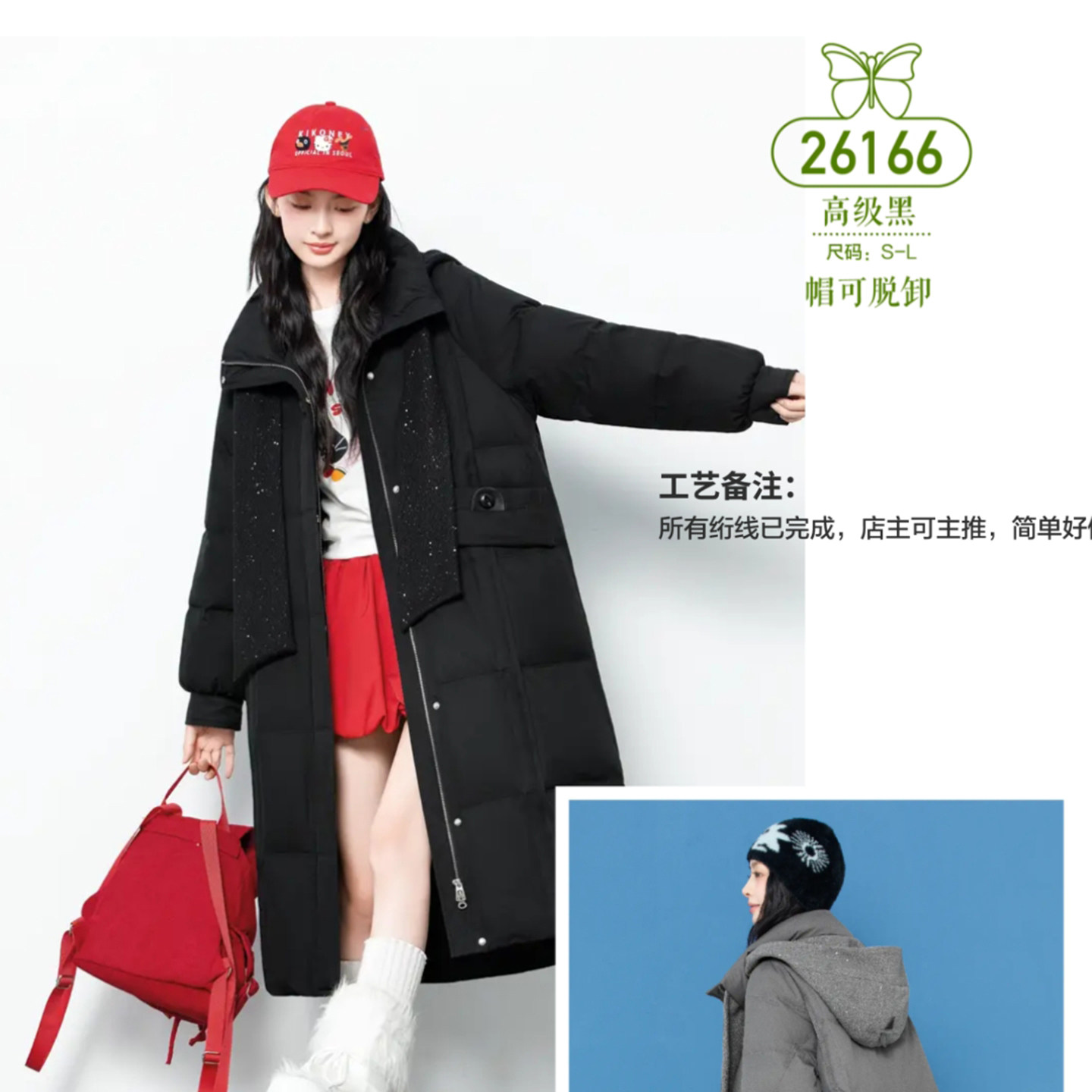 2025冬新款女活面脱卸长款羽绒服半九成品L25090定制翻新加厚加工