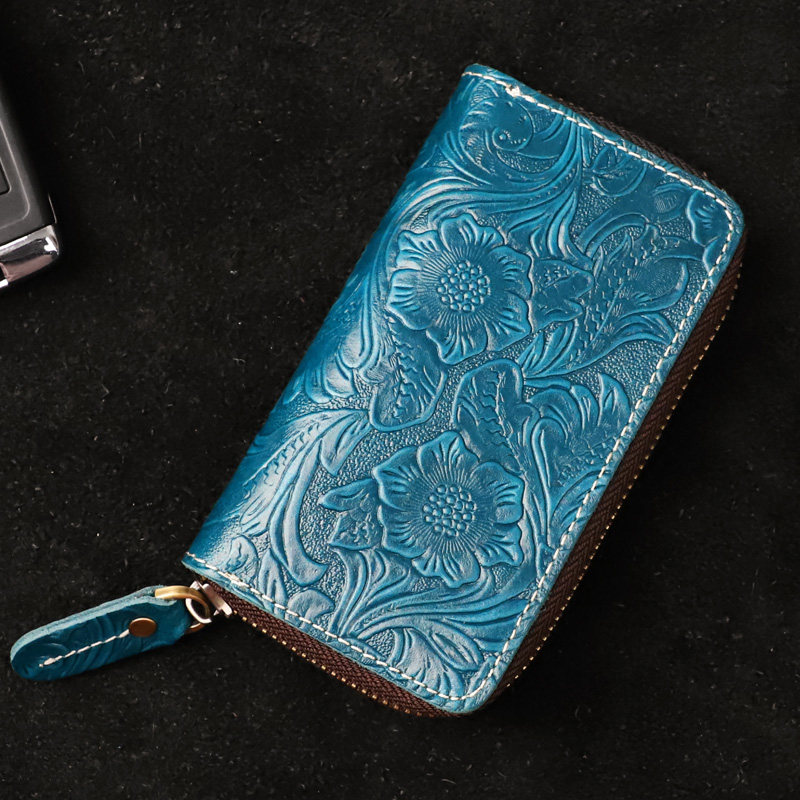 慢时光手工头层植鞣牛皮钥匙包男汽车锁匙包女锁包真皮零钱包卡包