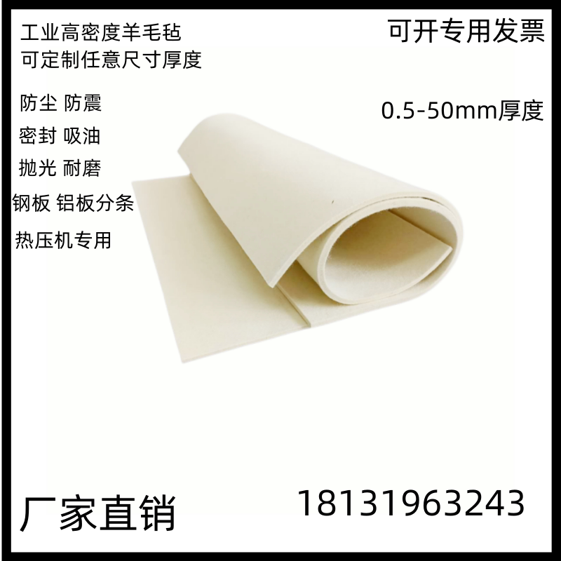 工业毛毡细纯羊毛毡高密度耐磨密封抛光吸油耐高温过滤毛毡可裁剪