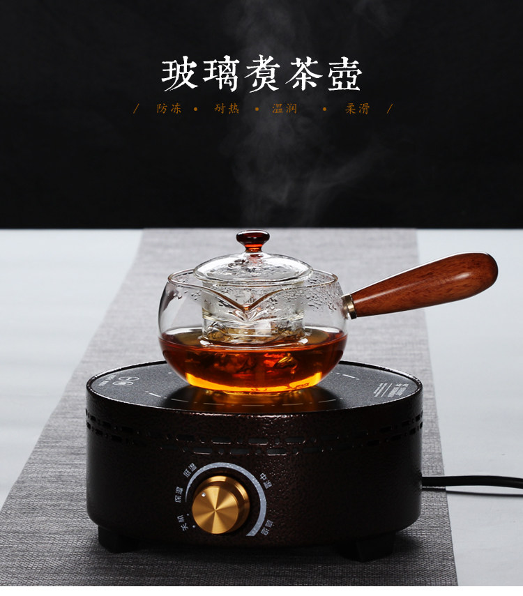 透明玻璃过滤煮茶壶胡桃木把电陶炉可煮单壶耐高温花茶壶泡茶神器