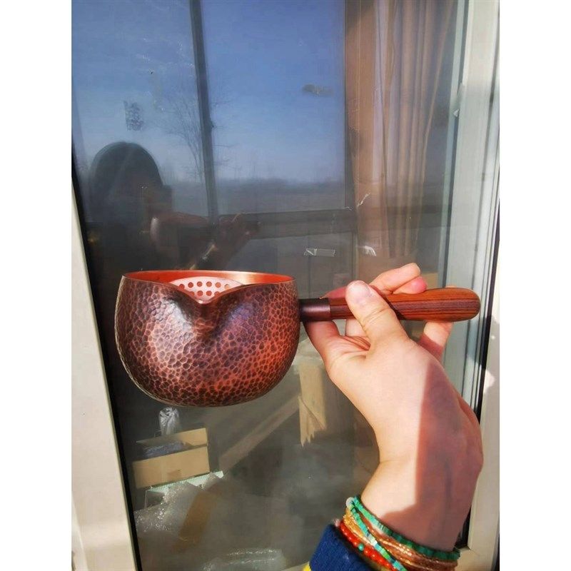 加厚紫铜罐罐茶公道n杯侧把纯手工肌理铜壶复古围炉煮茶神器带滤