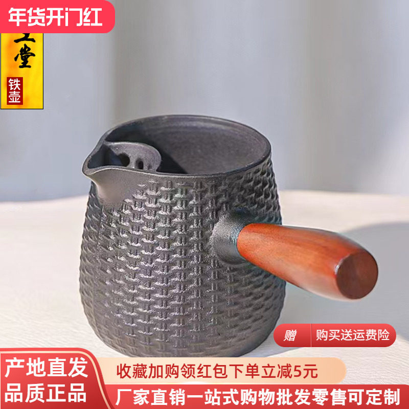 速发加厚紫铜罐罐茶公道杯侧把纯手工肌理铜壶复古围炉煮茶神器带
