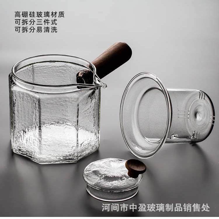 煮茶玻璃壶泡茶花茶壶功夫茶具冲茶器过滤带盖侧把壶木把煮茶神器