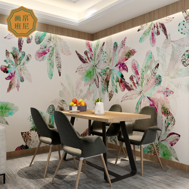 画帛北欧餐厅艺术壁纸抽象羽毛电视卧室背景个性墙纸定制壁画墙布
