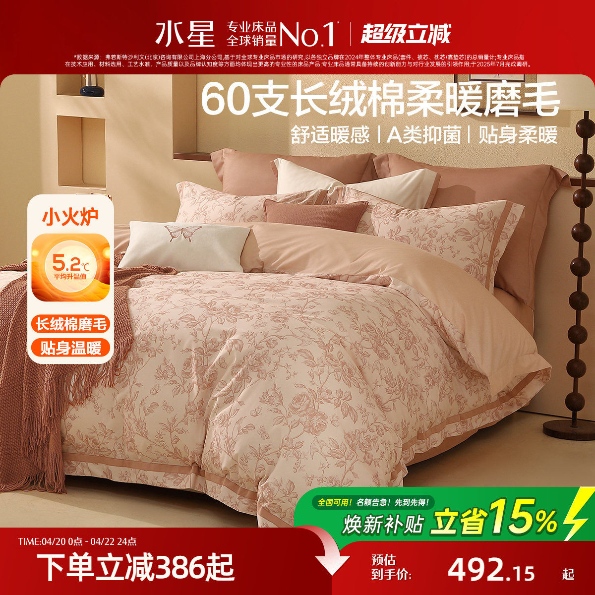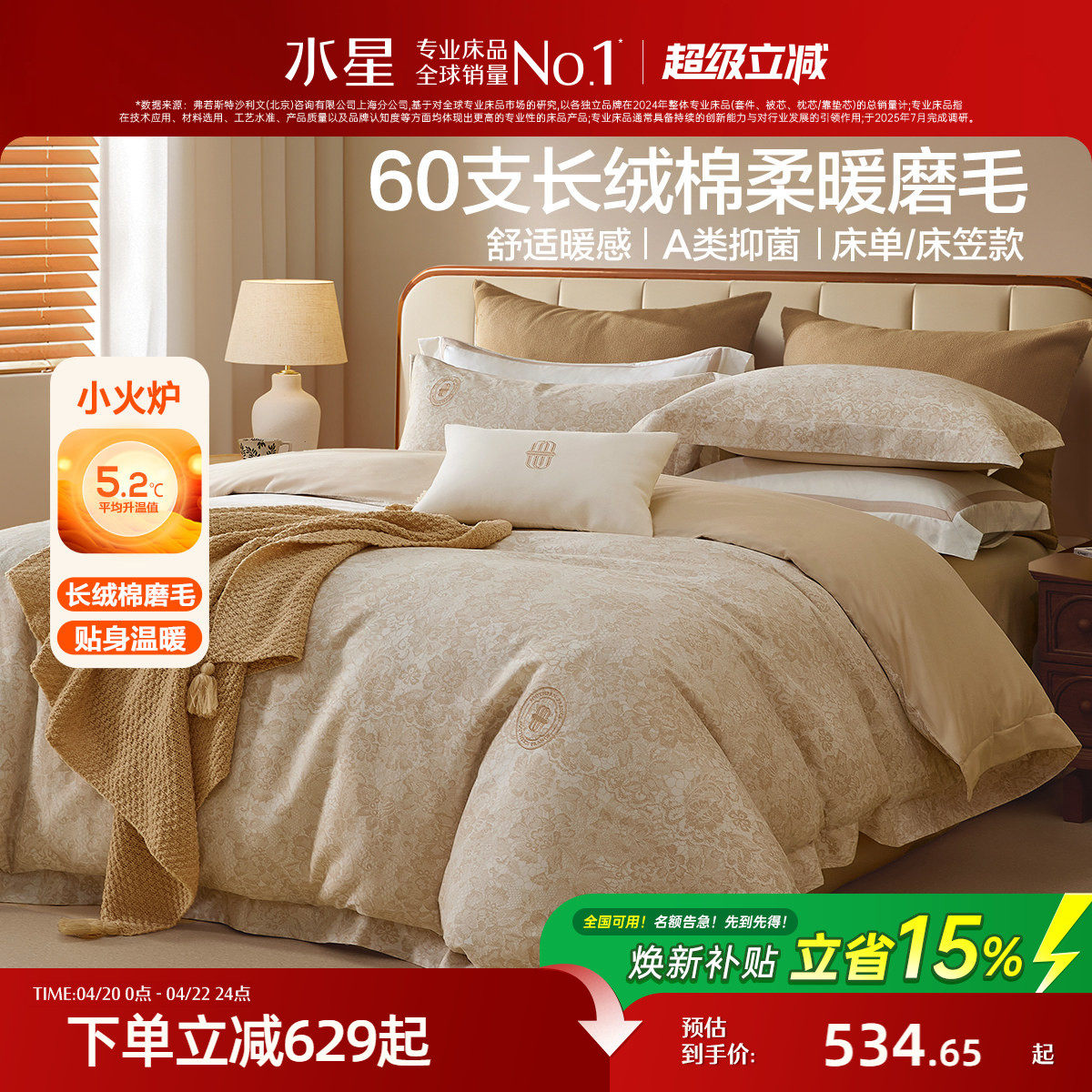 水星家纺双面磨毛四件套60支长绒棉四件套件床单被套新款家用床品