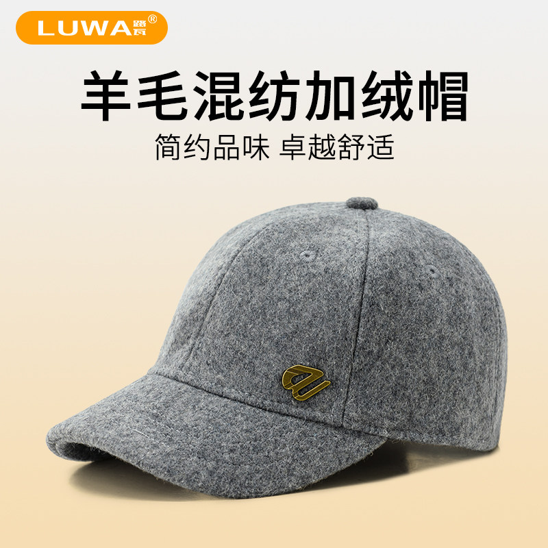 路瓦秋冬加绒羊毛呢保暖棒球帽男短帽檐真羊毛加厚中老年鸭舌帽子