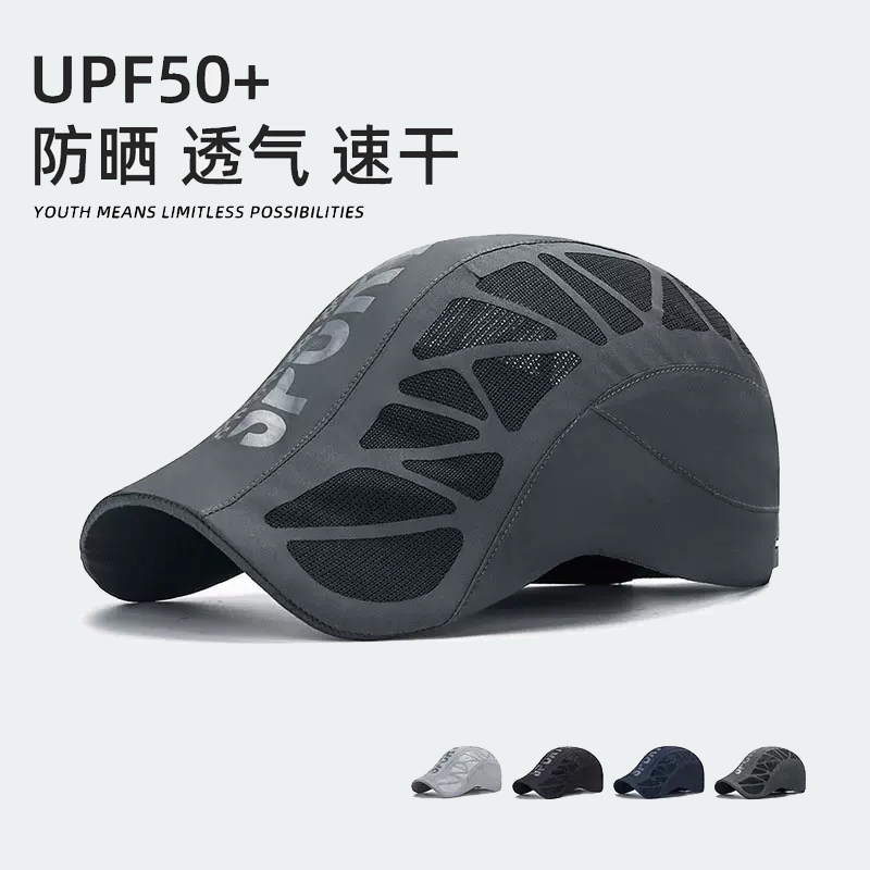 防晒帽男休闲户外运动速干遮阳透气网眼鸭舌帽子中老年钓鱼棒球帽