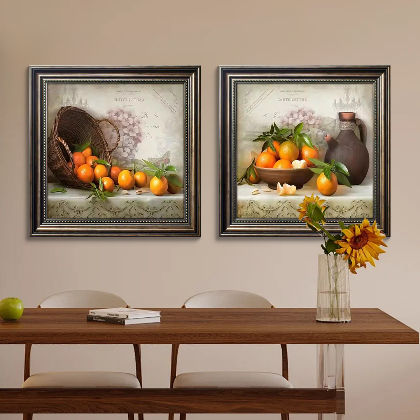 硕果盈盈》原木奶油风水果餐厅玄关挂画中古风客厅装饰画艺术壁画