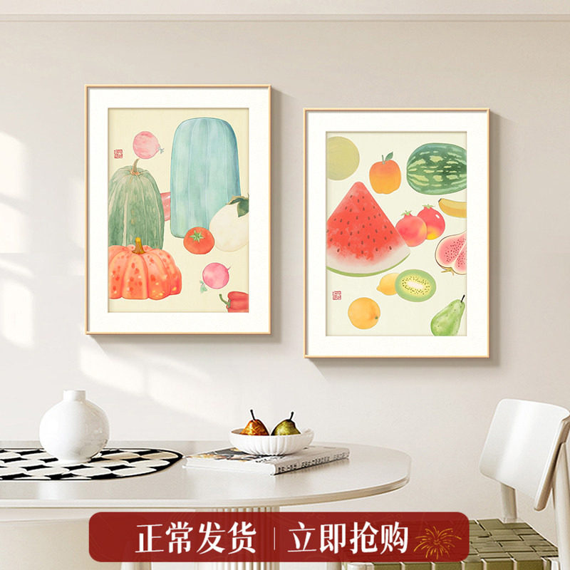 五谷丰登餐厅挂画现代简约客厅背景墙装饰画蔬菜水果两联组合壁画