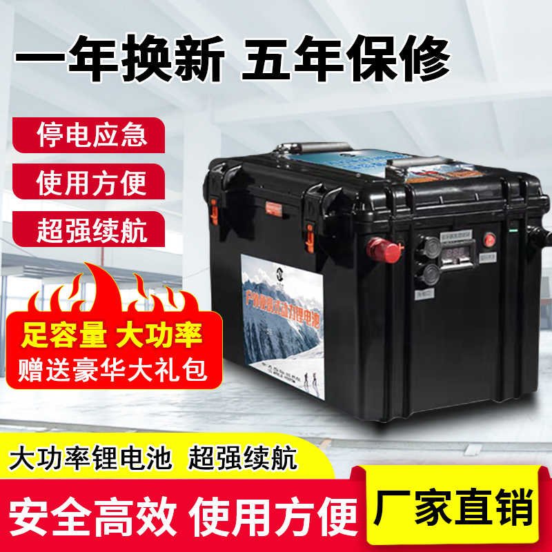 德力普锂电池12v大容量户外氙气灯磷酸铁锂功率一体机24伏蓄电瓶
