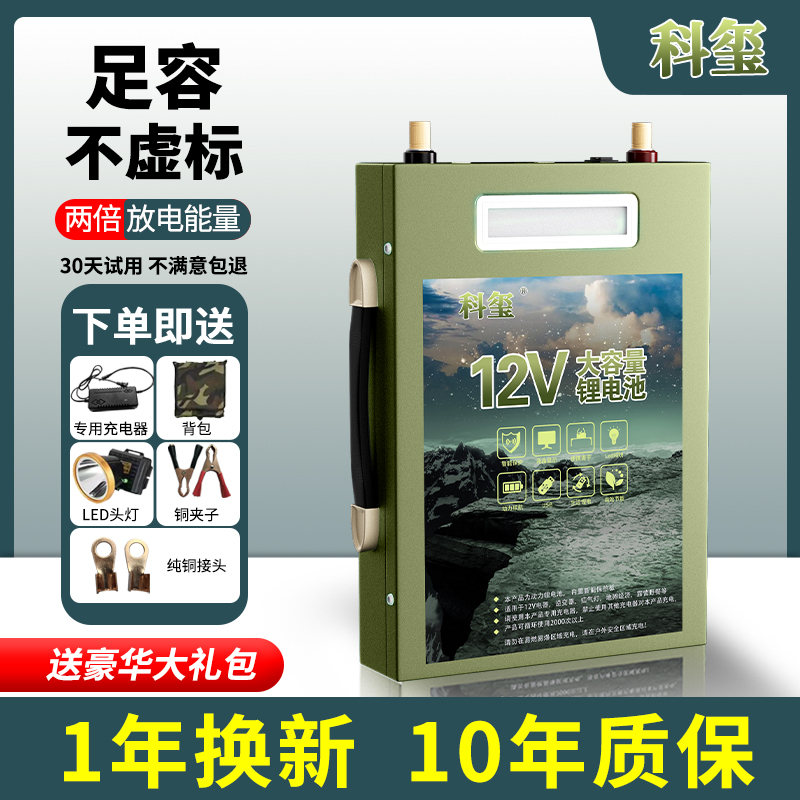 锂电池12V锂电瓶大容量蓄电池三元铁锂疝气灯一体动力聚合物100安
