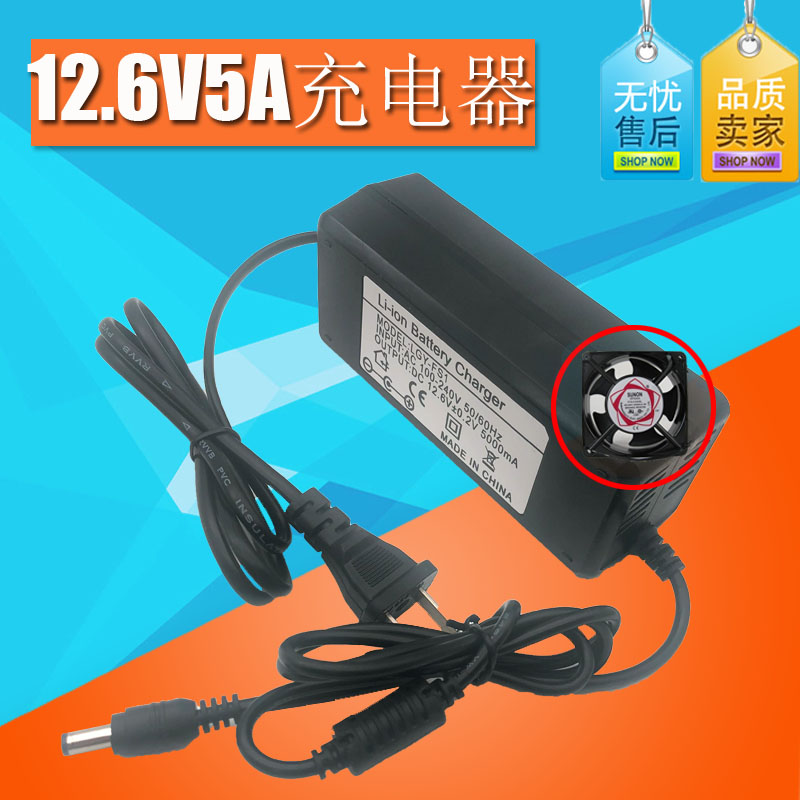 带风扇12.6V锂电池充电器12V锂电瓶5A电机聚合物18650三元通用80A