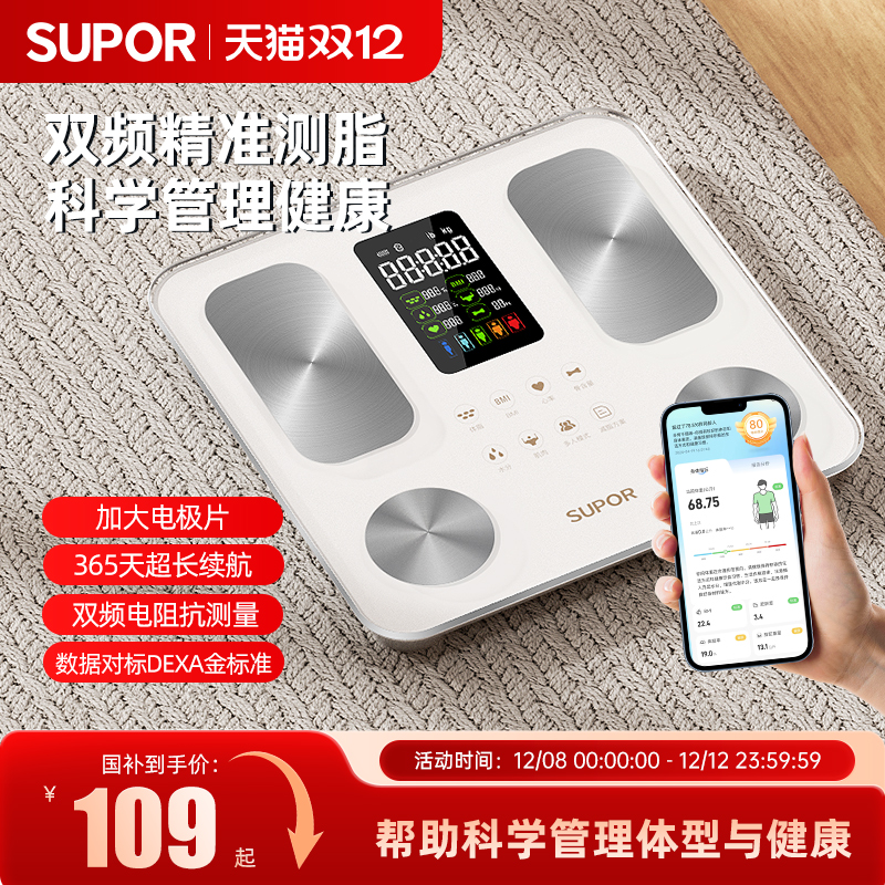 苏泊尔体重称体脂秤高精度家用精准充电智能电子称减肥专用人体秤