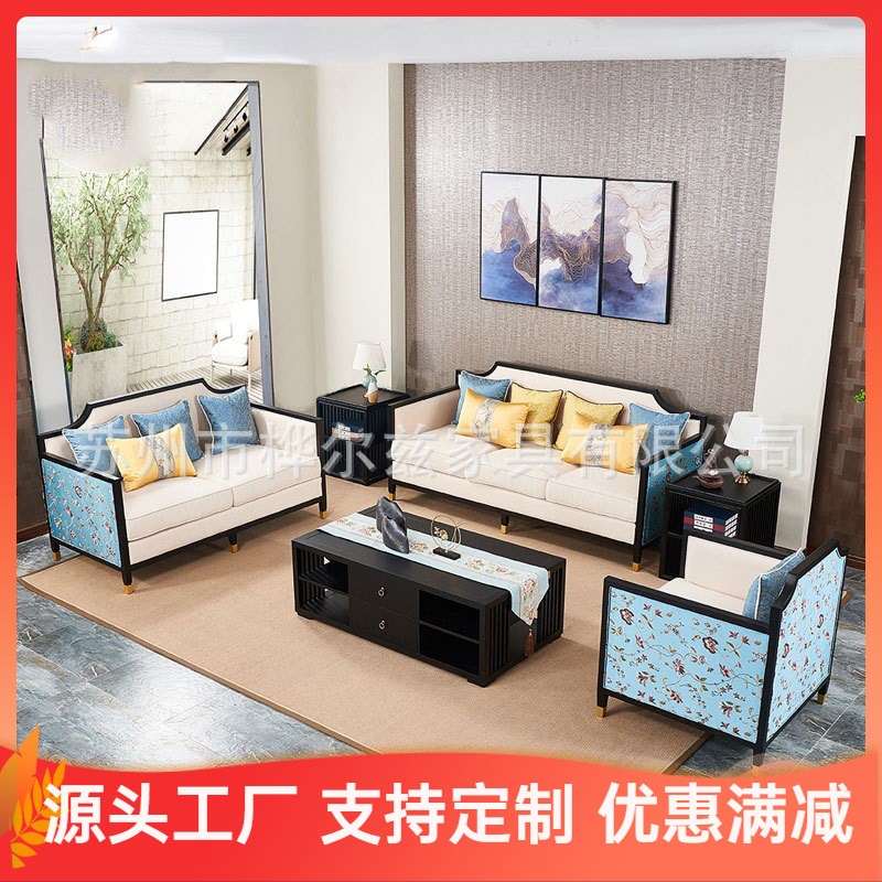 现代家具工厂家新中式实木布艺沙发组合客厅轻奢样板间禅意胡桃木