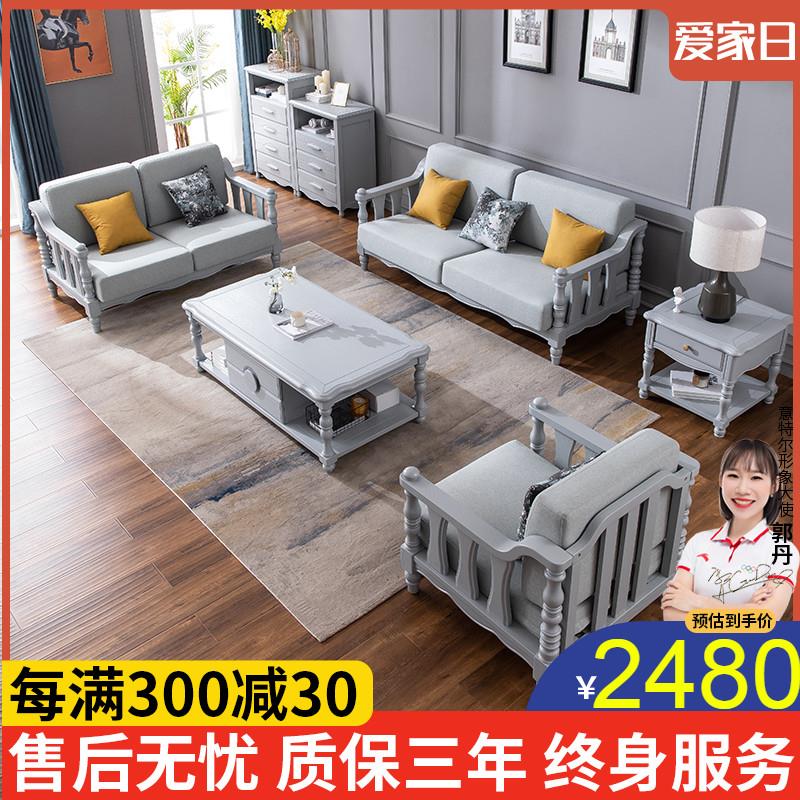 美式实木布艺沙发组合客厅轻奢家具现代简约小户型三人位灰色沙发