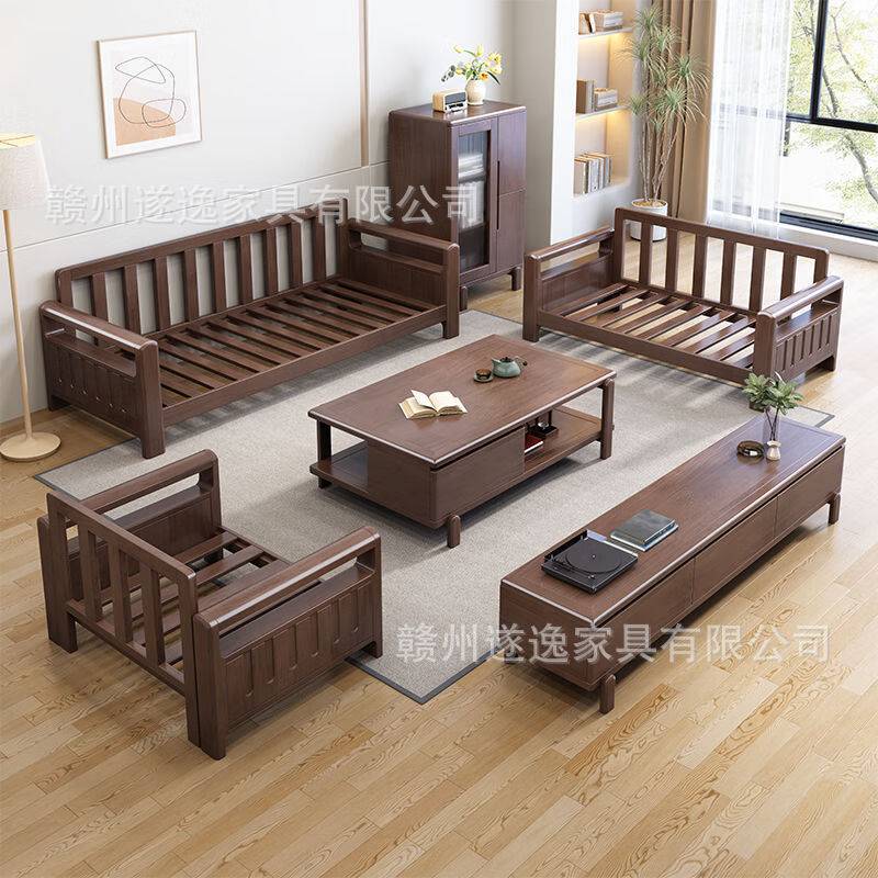 新中式实木沙发客厅全实木小户型组合现代简约原木布艺沙发床两用