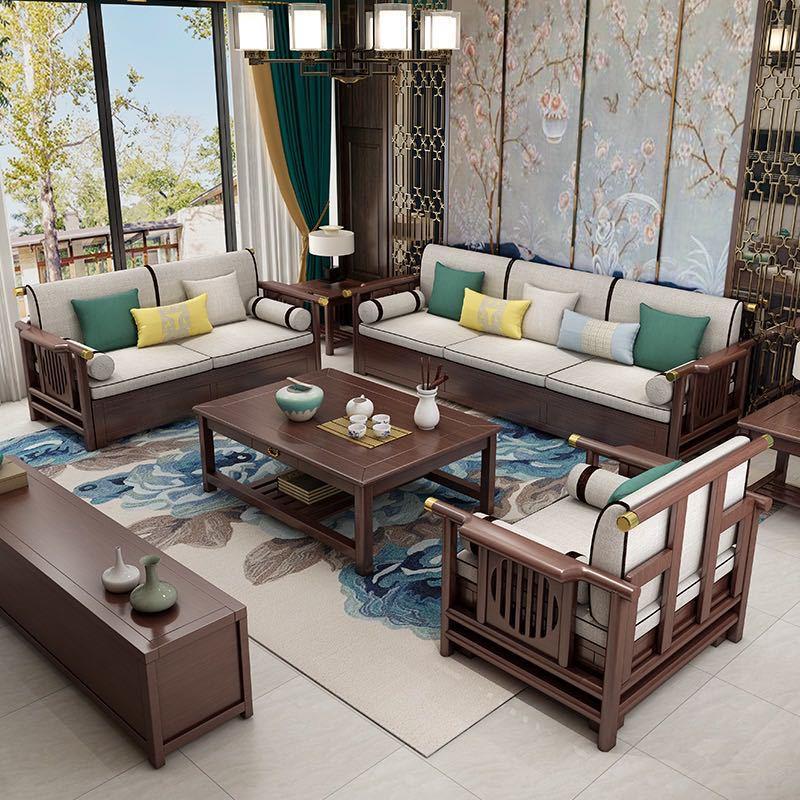 中式实木沙发现代简约家用小户型客厅三人位木质布艺沙发组合家具