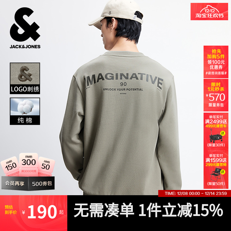 杰克琼斯男装秋季新款纯棉撞色印花长袖T恤情侣刺绣卫衣外套男士