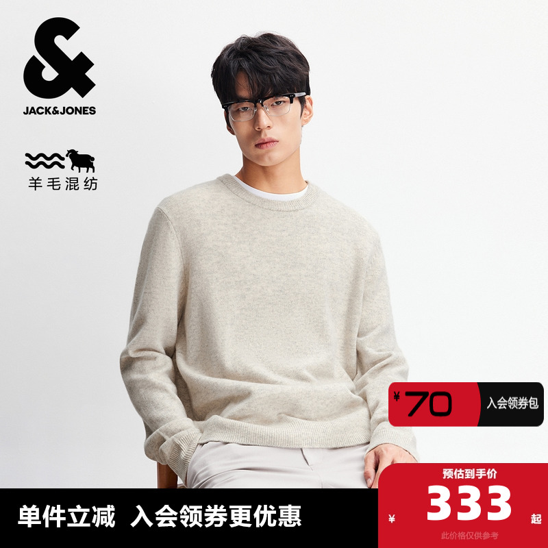 杰克琼斯男装毛衣打底衫长袖T恤针织衫简约内搭刺绣时尚潮流男款
