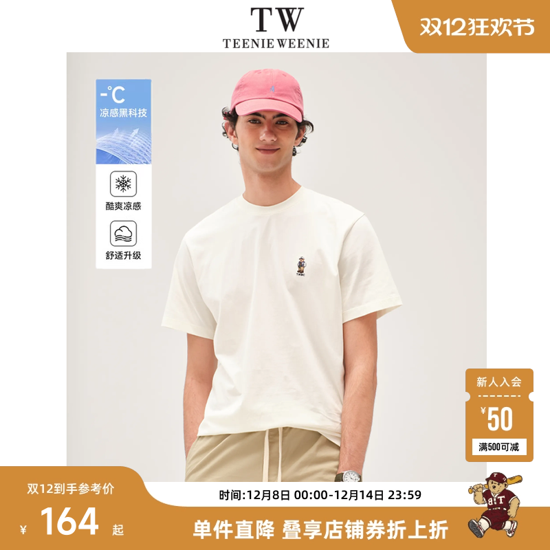 Teenieweenie小熊男装夏季新款t恤男士情侣圆领刺绣凉感短袖上衣