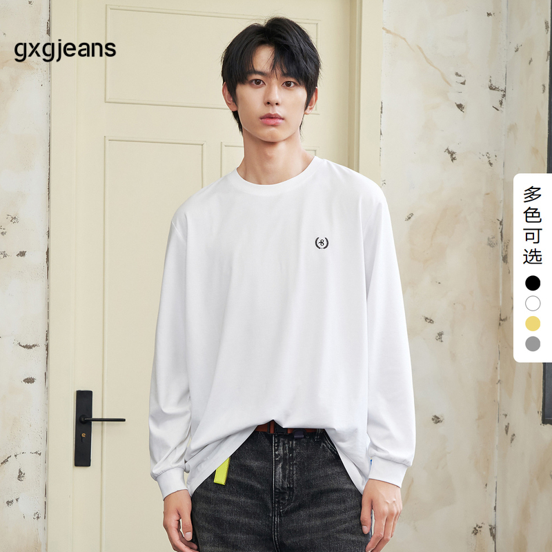 gxgjeans男装 多色简约刺绣宽松圆领长袖T恤男生打底 25春季热卖