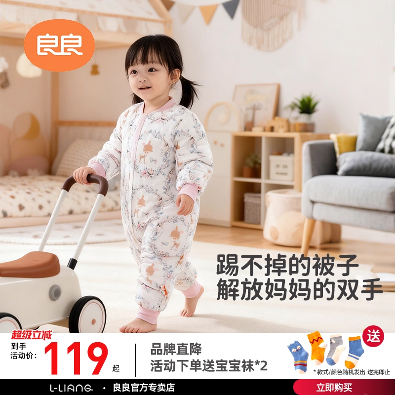 良良婴幼儿睡袋宝宝分腿纯棉春秋寒冬季加厚全棉防踢被四季通用款