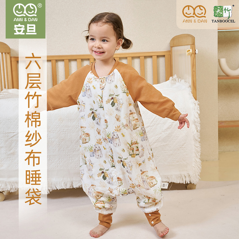 安旦六层睡袋竹棉纱布儿童婴幼儿睡袋防踢被24新品秋冬幼儿园午睡