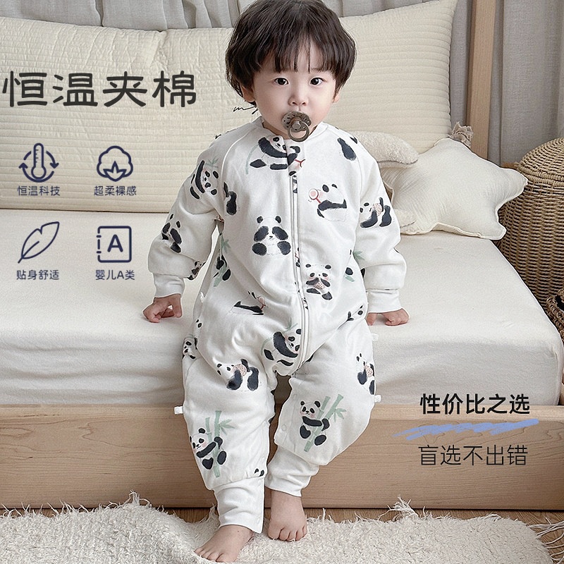 婴幼儿睡袋纯棉恒温分腿连体衣宝宝春秋冬款薄夹棉分腿防踢被神器