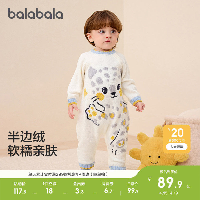 巴拉巴拉童装婴儿连体衣新生儿宝宝衣服哈衣爬服2026冬红色半边绒
