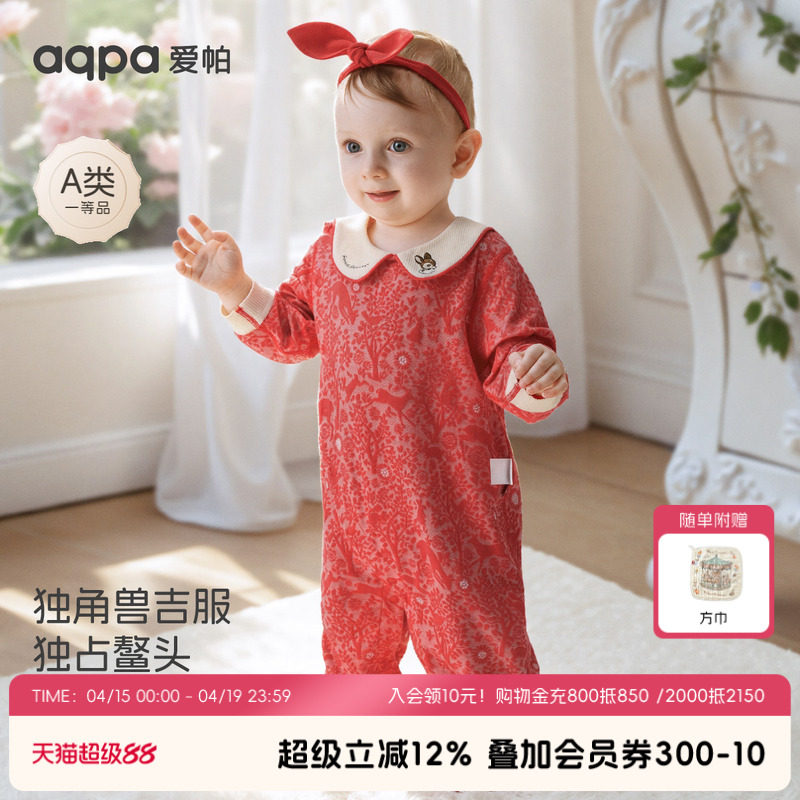 aqpa爱帕婴儿连体衣哈衣春秋新款提花宝宝衣服红色过年拜年服外出