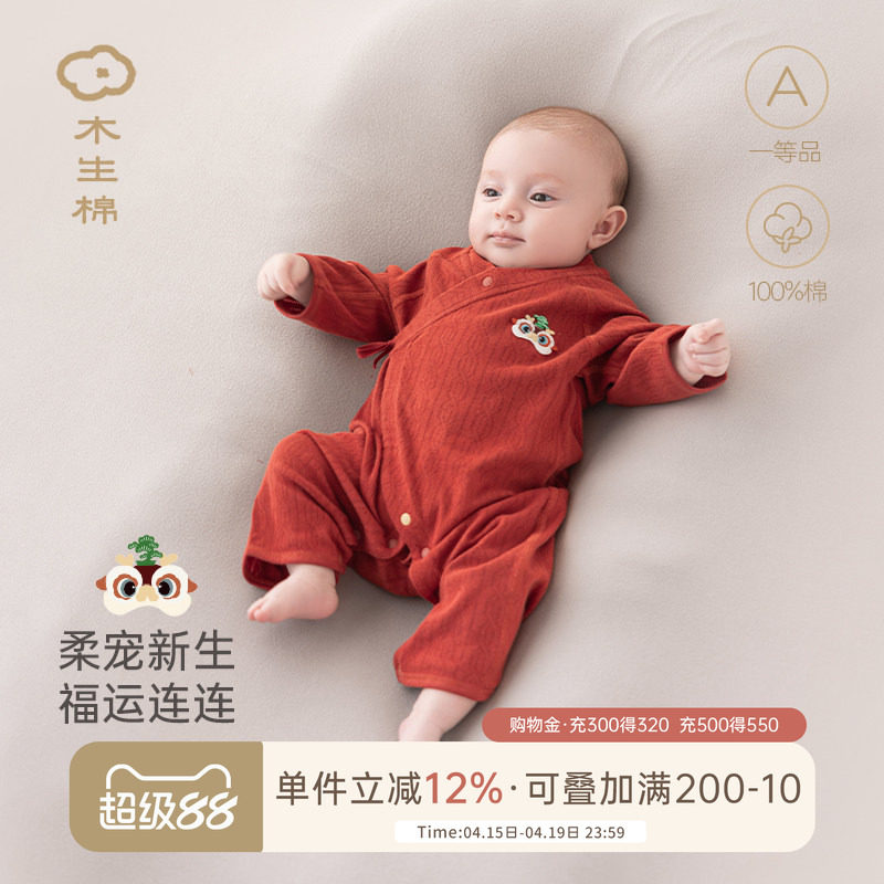 初生婴幼儿连体衣春秋季纯棉a类和尚服新生宝宝睡衣哈衣红色满月